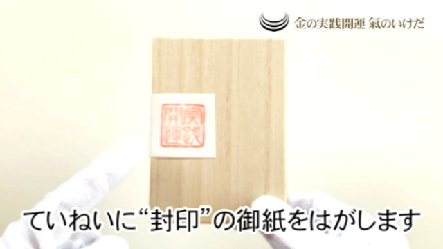 1 白い帯封をはがし、桐箱の蓋を開けます